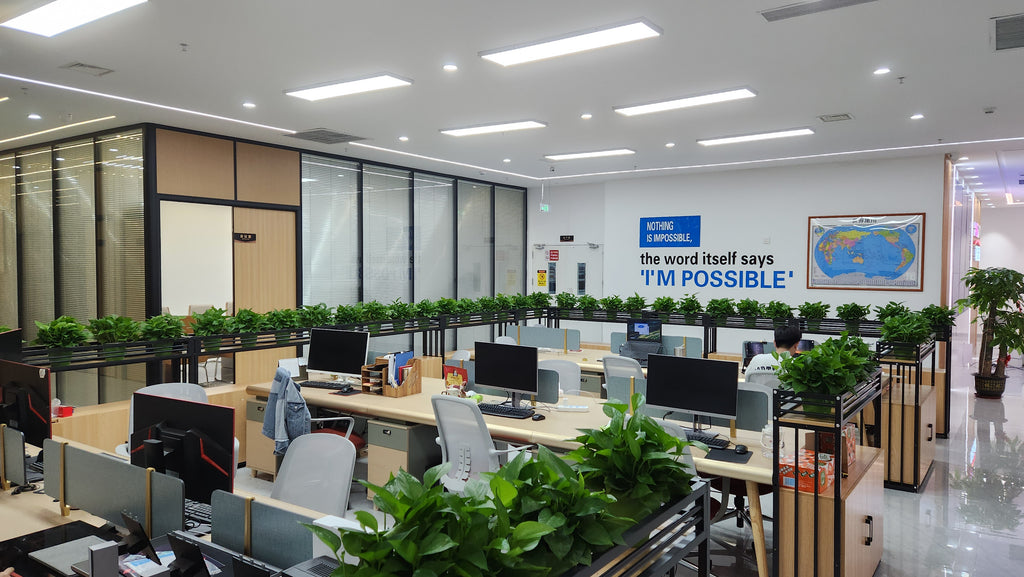The new office space is spacious and bright, using uniform wood grain walls, glass curtain walls and high-grade desks and chairs of the same colour. There are separate office spaces for different departments such as Central Market Department, Overseas Department, R&D Department, Production Department and Art Department. Clerical, photography, live broadcasting, meeting and living areas are perfect and reasonably distributed. It creates a comfortable and convenient working environment for colleagues.