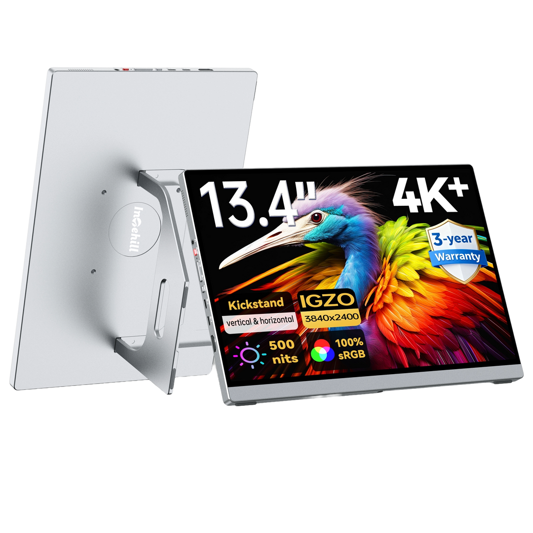 Intehill 13.4" 4K Portable Monitor, IGZO UHD 3840x2400, 16:10 HDR Display, Built-in Kickstand, VESA, Dual USB-C & HDMI, Ultra Slim Aluminum External Monitor for Laptop, Mac, Gaming & Travel – U13ZC