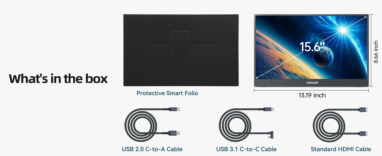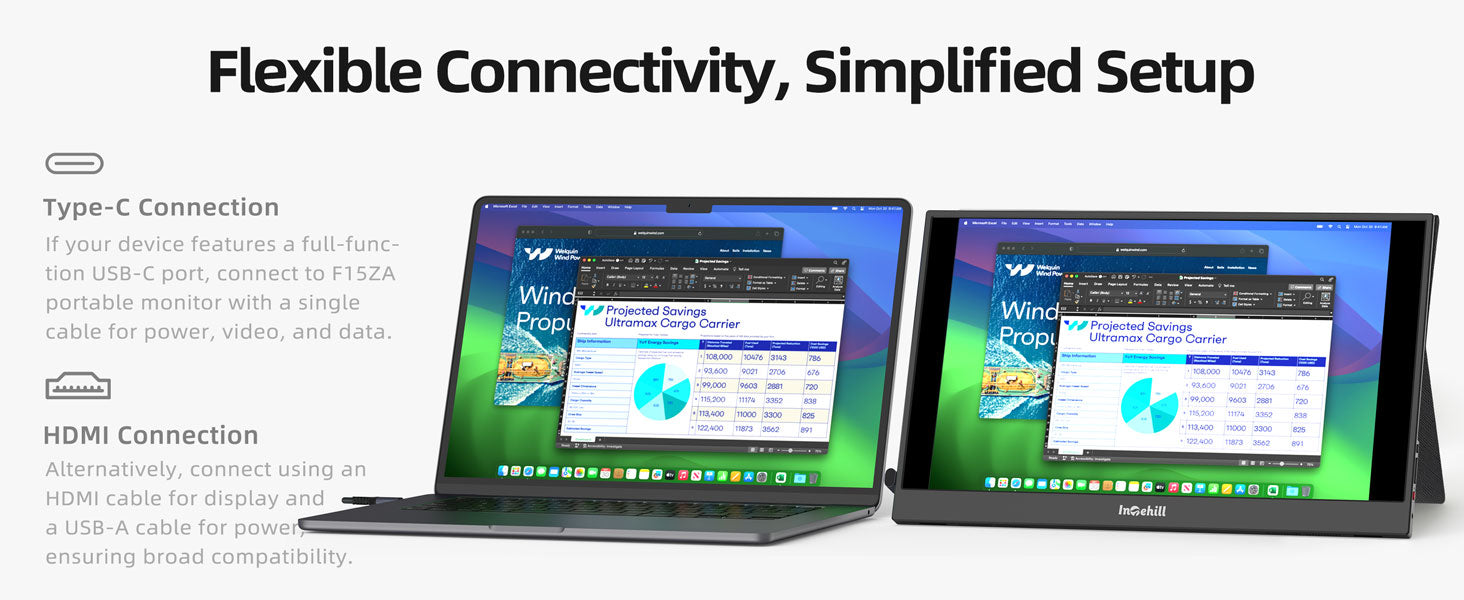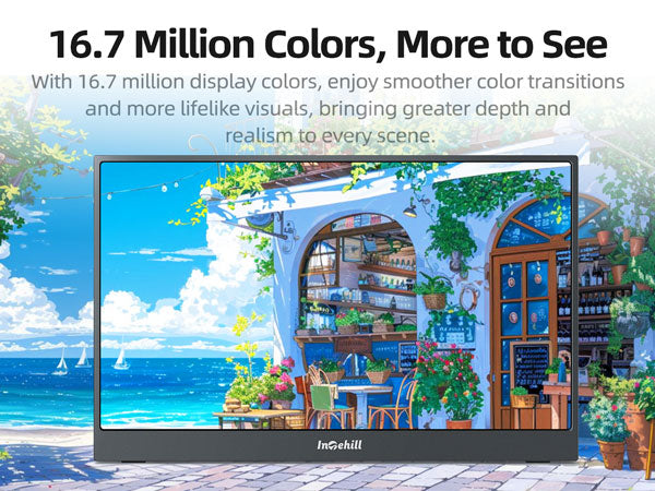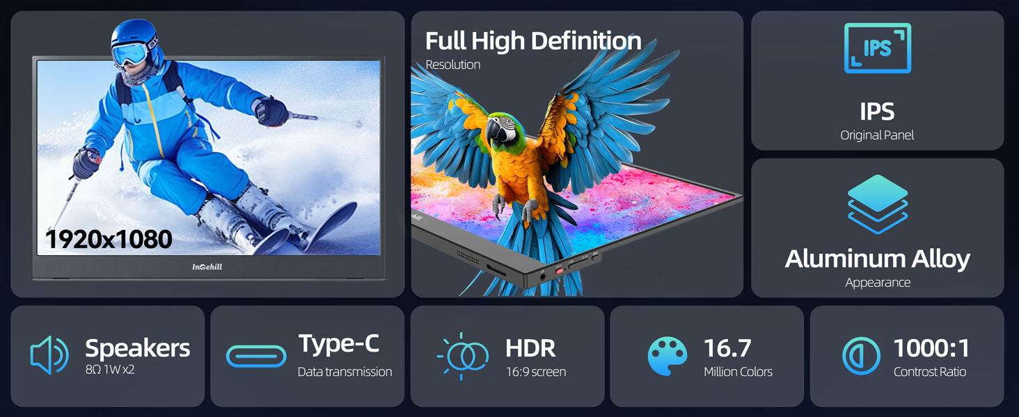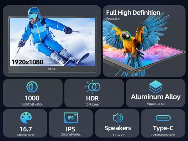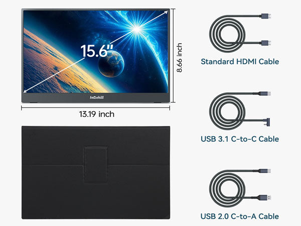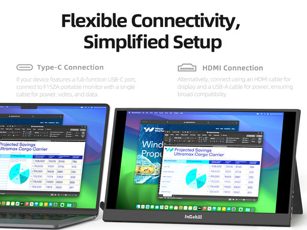 ULTRA-SLIM & LIGHTWEIGHT FOR TRAVEL: Crafted with premium aluminum alloy body, this travel monitor for laptop is slim, lightweight, and built to last. Easily slip it into your bag for business trips, remote work, or digital nomad setups. Intehill F15ZA portable monitor is an ideal portable second monitor wherever you go