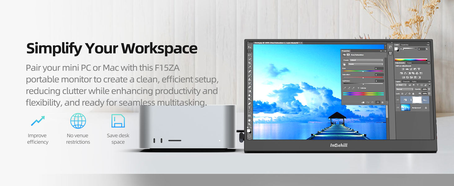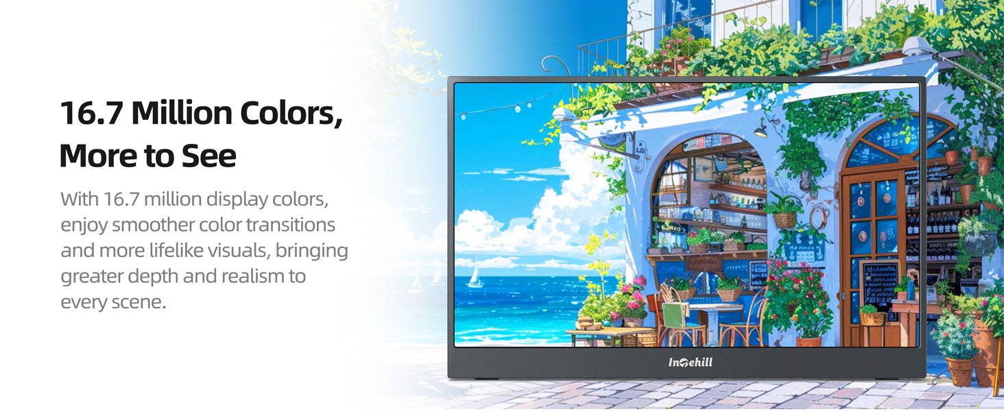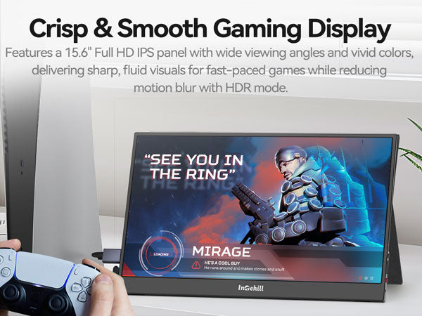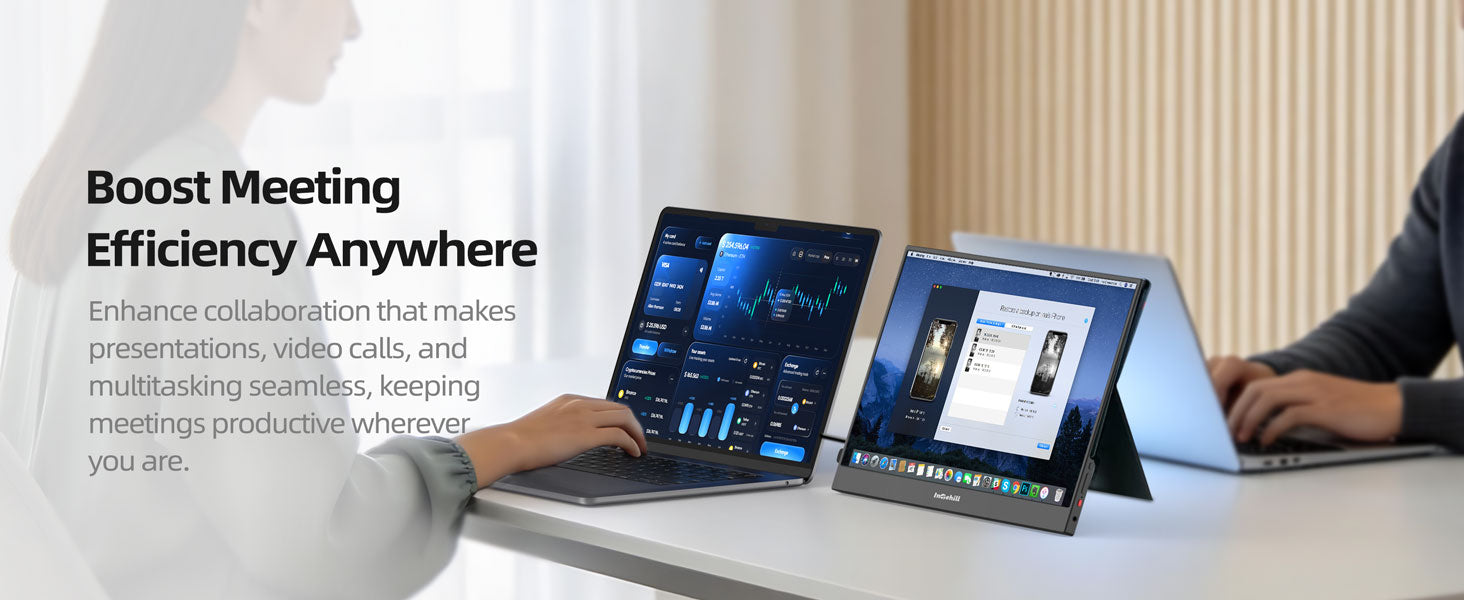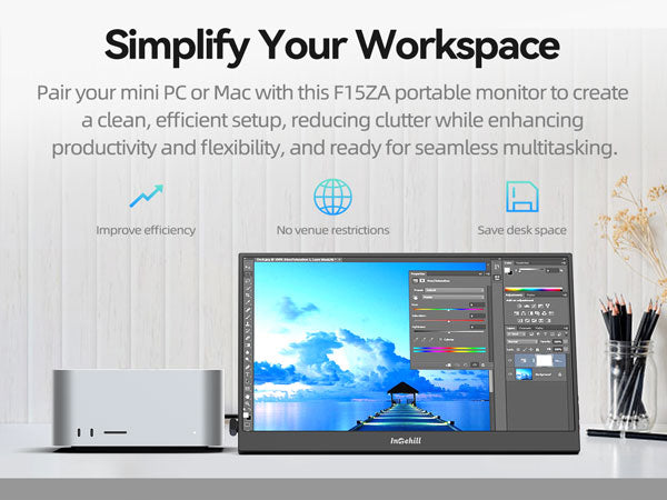 ULTRA-SLIM & LIGHTWEIGHT FOR TRAVEL: Crafted with premium aluminum alloy body, this travel monitor for laptop is slim, lightweight, and built to last. Easily slip it into your bag for business trips, remote work, or digital nomad setups. Intehill F15ZA portable monitor is an ideal portable second monitor wherever you go