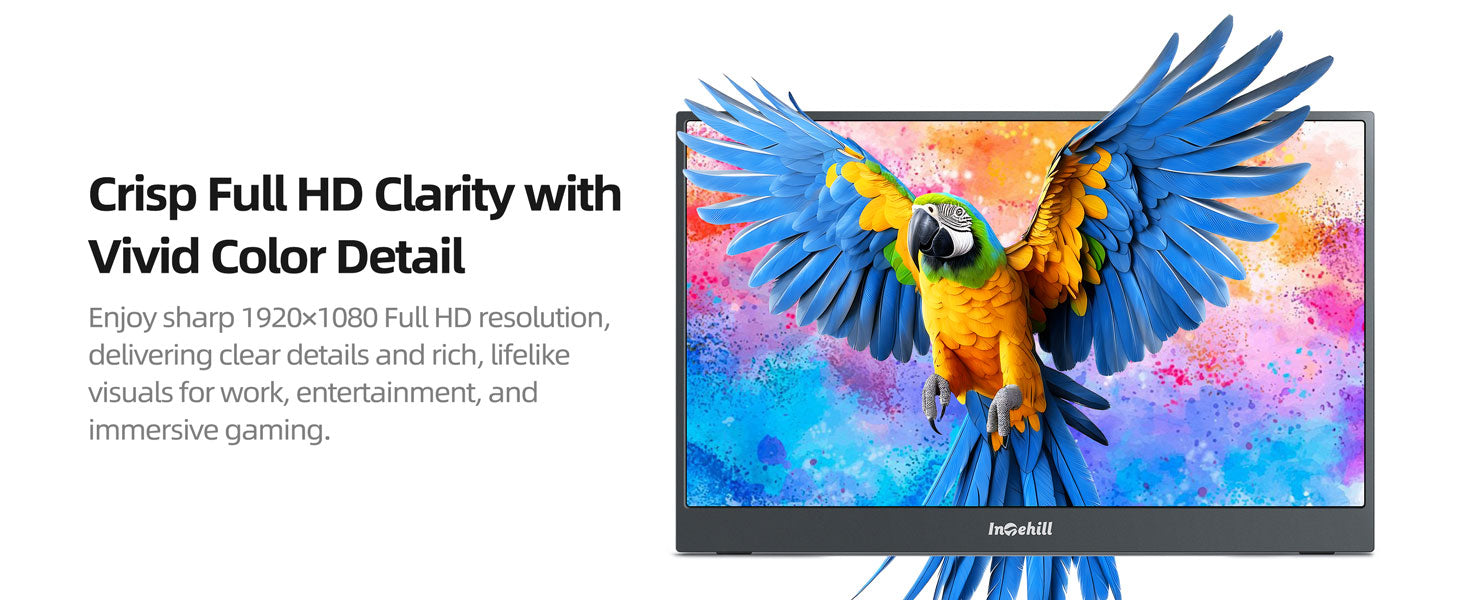 VIVID FHD IPS DISPLAY FOR DAILY PRODUCTIVITY: Enjoy crisp detail on a 15.6" portable monitor with 1920×1080 FHD resolution. The matte screen reduces reflections while maintaining consistent colors from wide viewing angles, making it ideal as a second monitor for laptop during work, study, or travel
