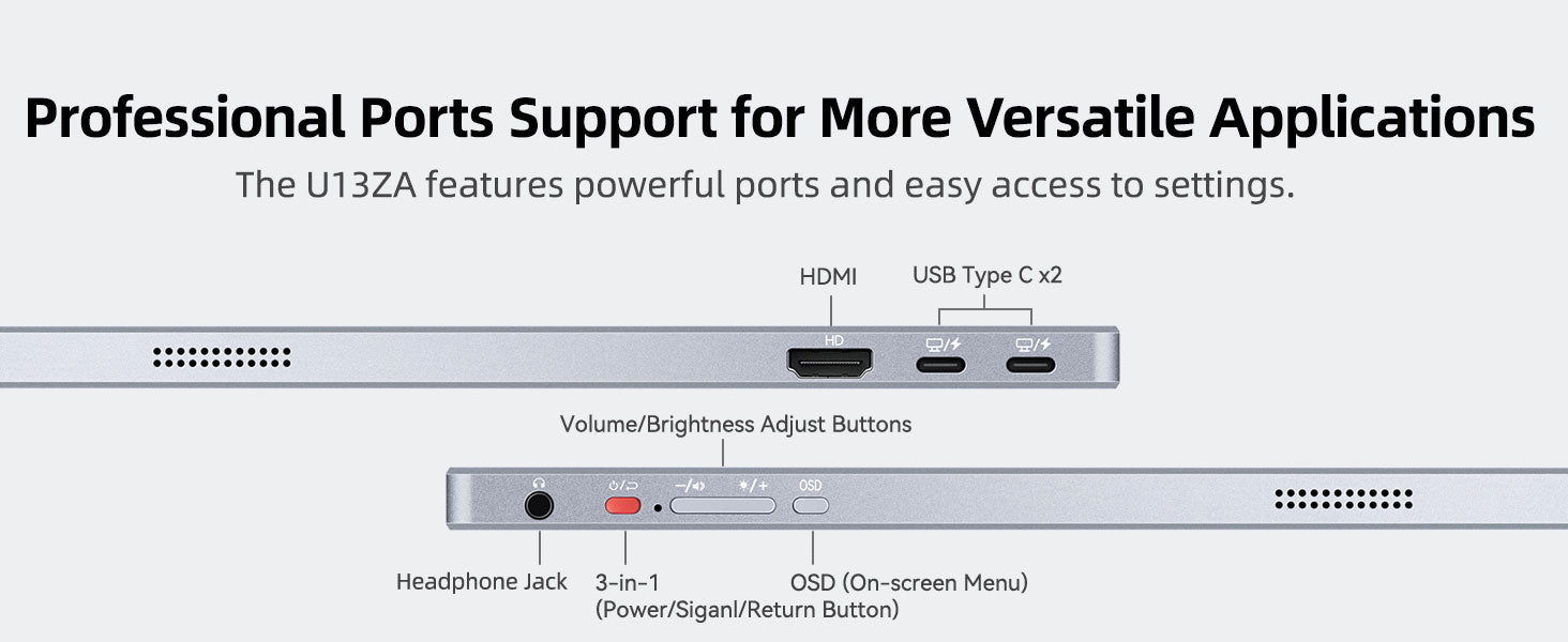 U13ZA 13.4 インチ 4K+ ポータブル モニターは、デザイナー、ビデオ編集者、ハイエンド ユーザー向けに開発されました。MacBook の外部モニターや Mac Mini のコンピューター ディスプレイとして最適です。もちろん、Windows OS 搭載のラップトップや PC でも動作します。
